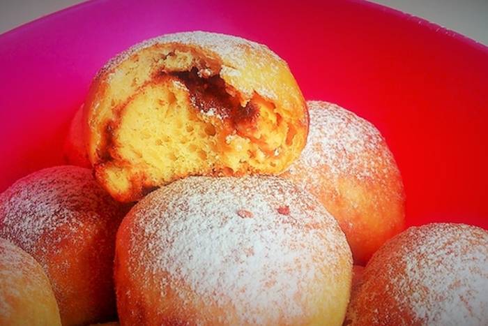 Razvaljati na pobrašnjenu radnu površinu, rezati u kocke tijesto i filovati lino ladom (ili nekim drugim čokoladnim namazom). Svaku kocku krajeve rukama slijepiti u redati u nauljeni pleh sa slijepljenim dijelom prema dole. Tako radite dok ne potrošite željenu količinu. Od ostatka tijesta napravite kiflice koje ćete puniti mliječno punjenom čokoladom.
