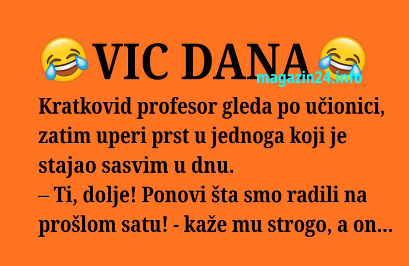 Kratkovid profesor gleda po učionici, zatim uperi prst u jednog koji je stajao sasvim u dnu: