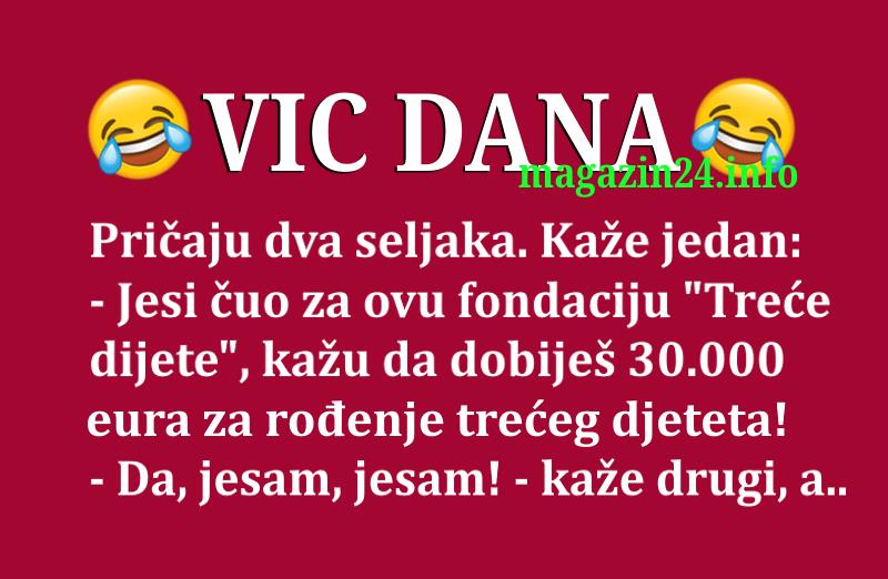 – Jesi čuo za ovu fondaciju “Treće dijete”, kažu da dobiješ 30.000 za rođenje trećeg dijeta!
