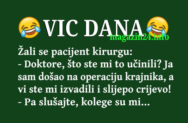 – Doktore, ja došao na operaciju krajnika, a vi mi izvadili i slijepo crijevo!